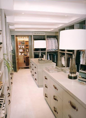 One of the reasons that I stay in my small one bedroom apartment is the closet. As far as New York City closets go, it's a large one with an eight foot long pole for hanging clothes and floor to ceiling shelves behind it, not to mention a storage area on top on the entire thing. Of course that means that clothing can be put away, never to be seen from again. Which poses a problem when one actually wants to find something! My number one New Year's resolutions is to clean out the black hole of apparel. I've already donated and given away a lot and now I'm selling the good stuff on eBay. Looking at these chic closets is giving me motivation to keep going until the task is finally completed! If cleaning out the closet is on your list of resolutions, I hope they inspire you as well!